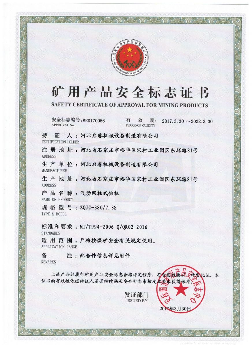 山西晉城新開的礦需要采購一大批煤礦機(jī)械設(shè)備,啟睿銷售人員恰好在晉城簽一批手持鉆機(jī)的合同,從客戶那了解到這個新礦的招標(biāo)情況,就按照招標(biāo)要求送去了氣動架柱式鉆機(jī)的材料。啟睿的氣動架柱式鉆機(jī)有安標(biāo)證,通過了ISO9001質(zhì)量管理體系認(rèn)證,符合礦方采購要求。