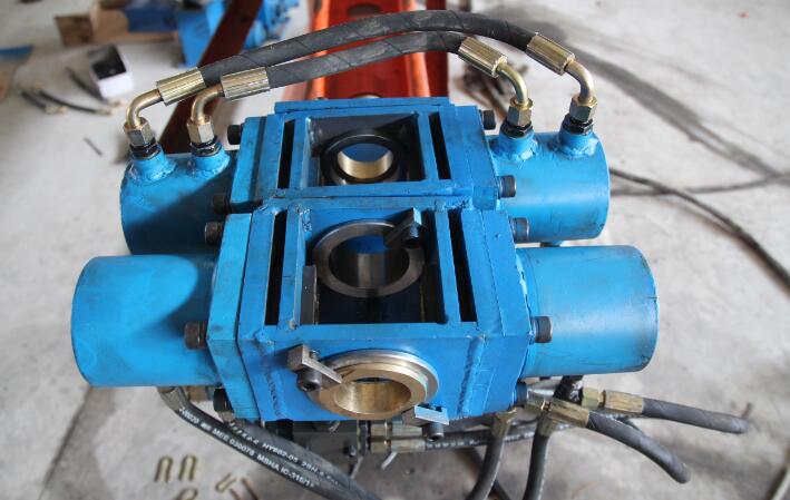 自動裝卸鉆桿機(jī)構(gòu)是套特定的夾持器,有兩組油缸組成,各油缸之間采用軟膠管鏈接。通過系統(tǒng)供油→油缸加緊鉆桿→液壓馬達(dá)帶動輸出軸旋轉(zhuǎn)的方式實現(xiàn)自動裝卸鉆桿的整套動作。架柱式液壓鉆機(jī)自動裝卸鉆桿的這個功能,除了節(jié)省勞動力外,還能顯著減少鉆桿更換時間,從而提高鉆孔效率。