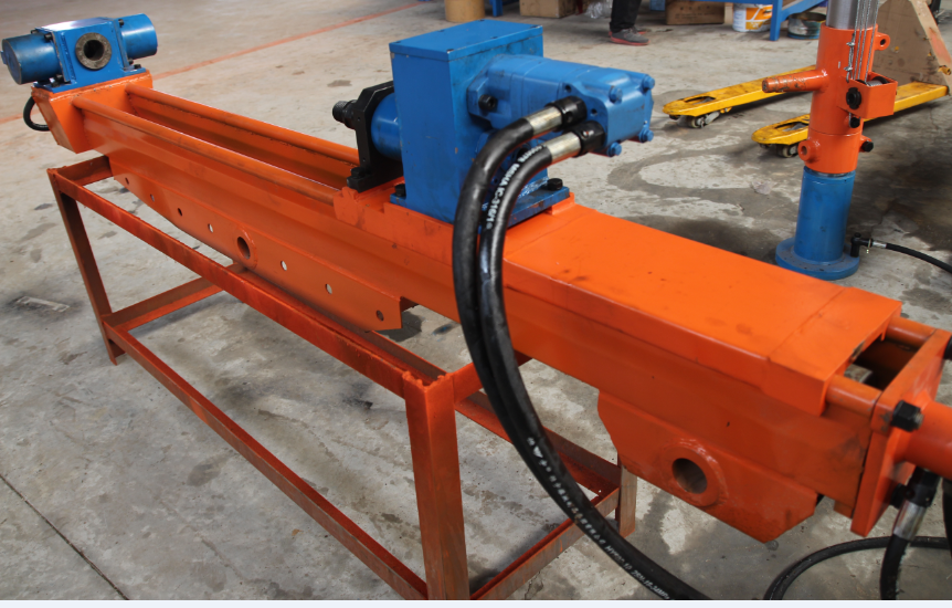 朔州山陰縣煤礦打探水探瓦斯孔120米左右,多方比較衡量選用的ZYJ-860/150架柱式液壓回轉(zhuǎn)鉆機(jī)。架柱式液壓回轉(zhuǎn)鉆機(jī)是一種全液壓馬達(dá)回轉(zhuǎn)式鉆孔設(shè)備,液壓馬達(dá)通過回轉(zhuǎn)裝置的輸出軸帶動鉆桿、鉆頭旋轉(zhuǎn),從而實現(xiàn)了切削破巖。該鉆機(jī)破巖速度快,鉆程長省時省力,工作效率高??摄@全煤層近水平定向孔,時效可達(dá)20米/時。山陰礦上用著很順手,鉆孔效率高成孔也好,探測施工很順利。ZYJ860液壓架柱式鉆機(jī),對山陰煤礦來說,是對的探水探瓦斯鉆機(jī)。