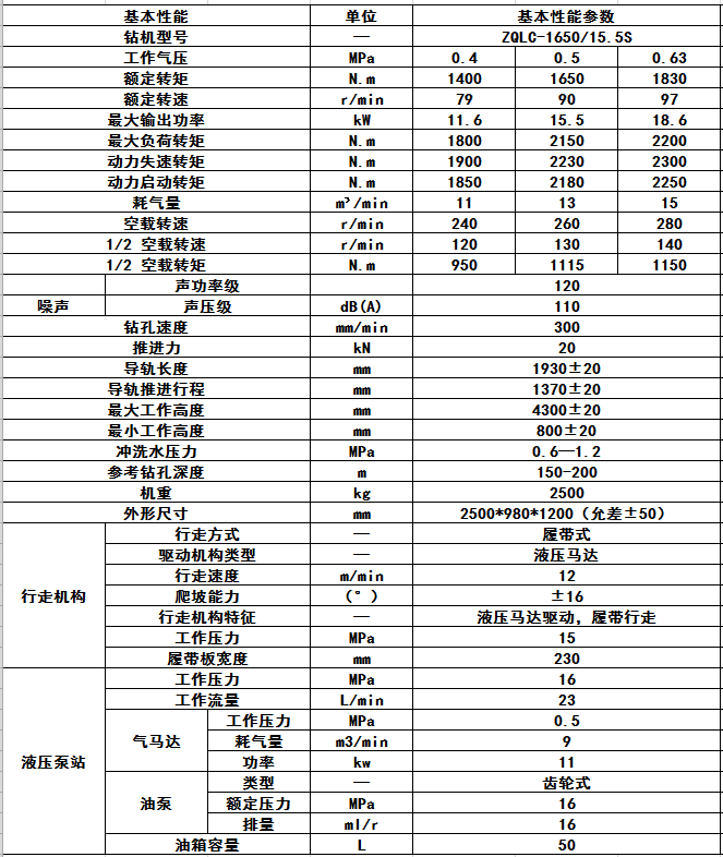 ZQJC-1650/15.5S氣動履帶式鉆機是我公司生產(chǎn)的新一代履帶行走式鉆機。是一種以壓縮空氣為動力,履帶行走式輕型深孔鉆機。適用于煤礦井下采用高效螺旋鉆桿和硬質合金鉆頭在煤層中的探水、探瓦斯及瓦斯抽放孔的施工。該設備具有結構緊湊、操作靈活、機動性能強、安全性能好。整機采用獨立模塊化設計,方便故障部位維修更換,較大程度上縮短了維修保養(yǎng)的時間。