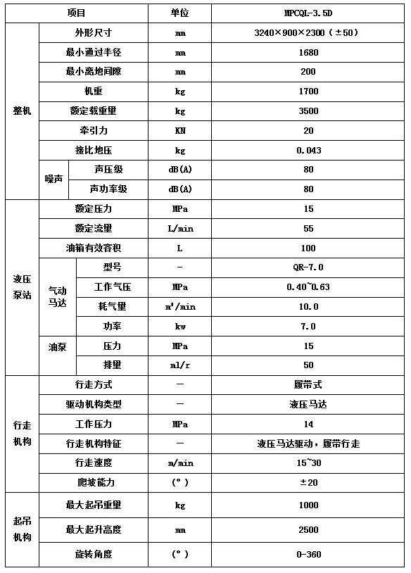 2、行走系統(tǒng):采用履帶式行走機(jī)構(gòu),適用于煤礦井下各種路況環(huán)境,高低速雙檔位行駛,行駛速度15-30米/分鐘,可在20°陡坡行駛;履帶液壓馬達(dá)自備自鎖功能,防止上下坡自己滑落,減輕工人勞動強(qiáng)度;