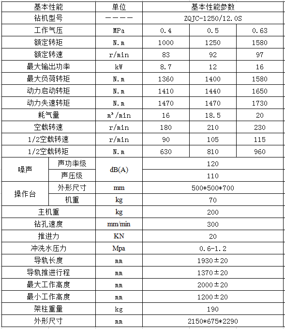 ZQJC-1250/12.0S氣動(dòng)架柱式鉆機(jī)主要是以壓縮空氣為動(dòng)力,主要使用高效 螺旋鉆桿和硬質(zhì)合金鉆頭回轉(zhuǎn)鉆進(jìn)的動(dòng)力頭式鉆機(jī)。該鉆機(jī)為便攜式,由回轉(zhuǎn)動(dòng)力裝置、導(dǎo)軌、雙 立柱和操作臺(tái)組成。它具有安全防爆、轉(zhuǎn)矩大、轉(zhuǎn)速高、質(zhì)量輕、體積小、效率高、結(jié)構(gòu)簡(jiǎn)單、維 修方便等特點(diǎn)。