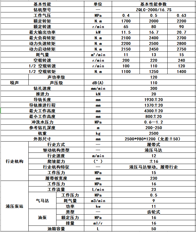 ZQLC-2000/16.7S氣動履帶式鉆機是我公司生產(chǎn)的新一代履帶行走式鉆機。是一種以壓縮空氣為動力,履帶行走式輕型深孔鉆機。適用于煤礦井下采用高效螺旋鉆桿和硬質合金鉆頭在煤層中的探水、探瓦斯及瓦斯抽放孔的施工。該設備具有結構緊湊、操作靈活、機動性能強、安全性能好。整機采用獨立模塊化設計,方便故障部位維修更換,較大程度上縮短了維修保養(yǎng)的時間。