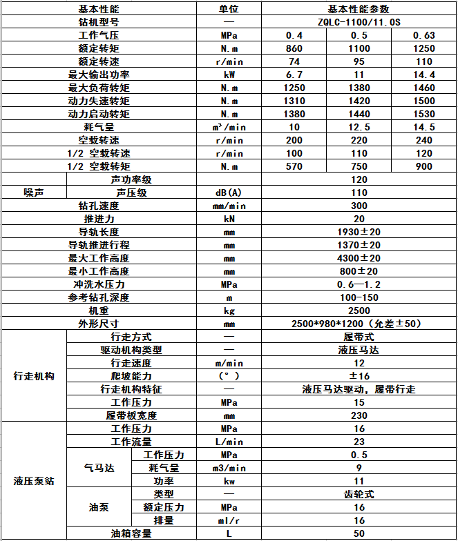 ZQLC-1100/11.0S氣動履帶式鉆機是我公司生產(chǎn)的新一代履帶行走式鉆機。是一種以壓縮空氣為動力,履帶行走式輕型深孔鉆機。適用于煤礦井下采用高效螺旋鉆桿和硬質(zhì)合金鉆頭在煤層中的探水、探瓦斯及瓦斯抽放孔的施工。